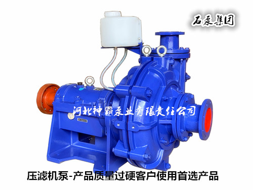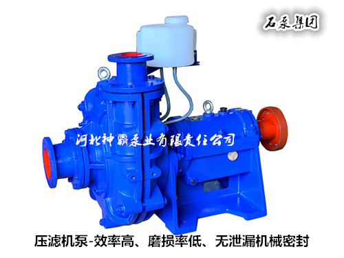 压滤机泵广泛应用于:炉渣污泥、电镀污泥、洗煤厂、市政污泥脱水、混凝土搅拌站泥沙、皮革废水、印染厂污泥、制沙厂污泥、石材厂污水、高岭土、垃圾焚烧污泥、钢厂废水、港口淤泥、尾矿选沙、电解锰、电解锌、各类淀粉、浓缩汤料等浆体的输送。神霸泵业公司的该产品具有高效节能、抗磨耐腐、振动小、噪声低、运行可靠、寿命长等特点,其综合性能达到国内领先水平。公司对该产品具有丰富的设计、生产、组装经验,所生产的产品在各类恶劣的工况条件下均使用运行良好,深受广大客户的一致赞誉。